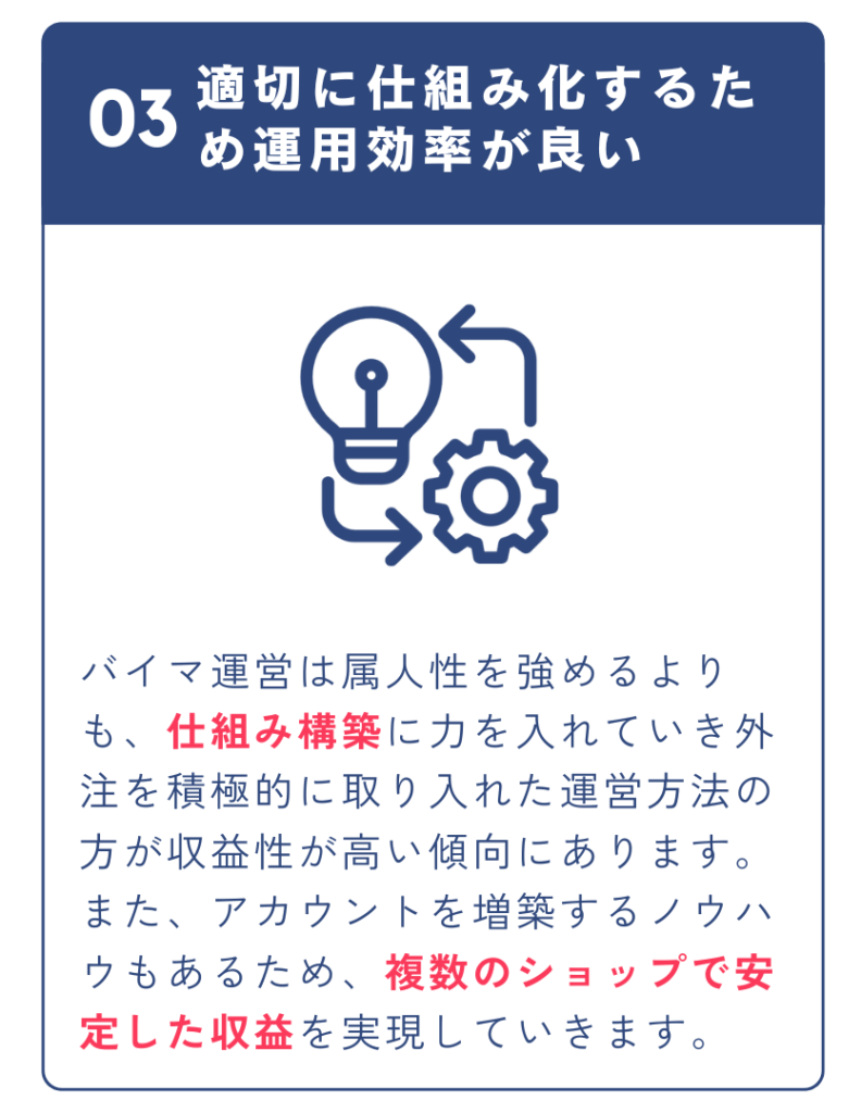 そこでクライアント様へ提供してきた当社独自のBUYMA運営ノウハウを各加盟店に教示いたします。